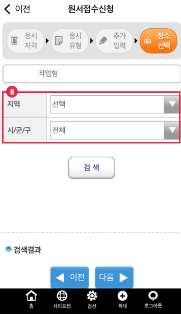 학력 , 수료상태 , 경제활동상태, 응시목적, 시험준비경로, 시험준비기간을 빠르게 체크해서 다음 누르기
